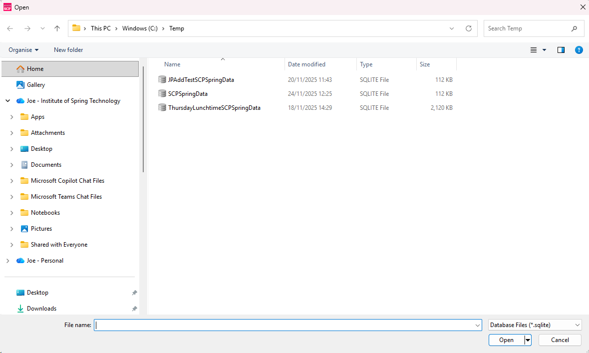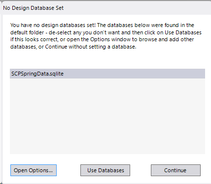 Note that the files available will be different on your computer - this screen shot shows the design databases available on MY installation of SCP - yours will be different.