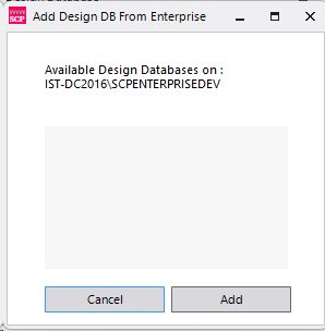 The following dialogue will be displayed, populated with Design Databases that you have been given permission to access. Select the one you're interestyed in and press 'Add'.